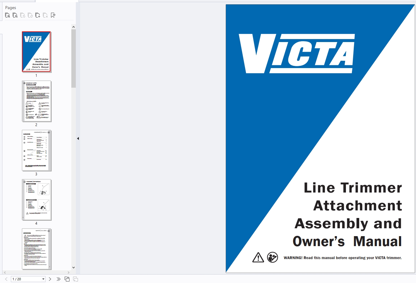 OPERATOR'S MANUAL TRIMMER, VICTA 1697262 English LR02677A_B_LO PDF