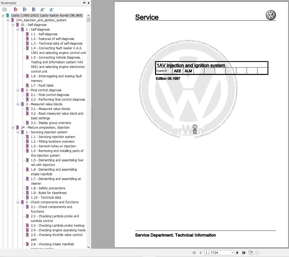 The Bookmarks of Volkswagen Caddy Kasten Kombi Pickup Workshop Service Manual: