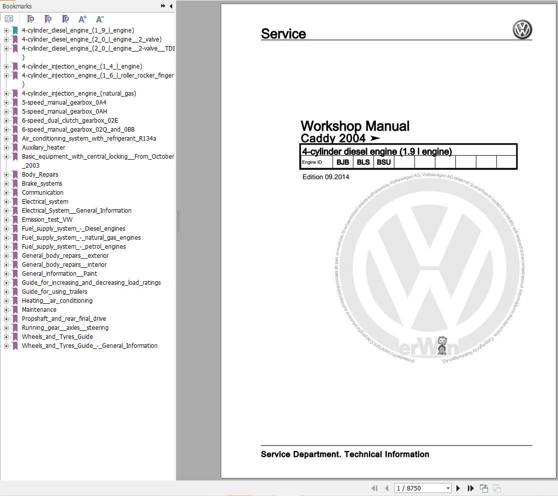 The Bookmarks of Volkswagen Caddy Kombi 2004-2010 Workshop Service Manual: