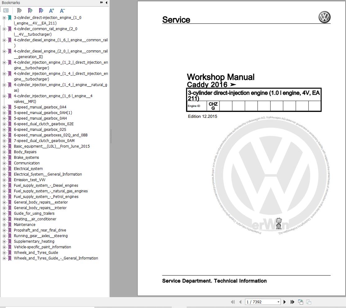 The Bookmarks of Volkswagen Caddy SA 2016-2019 Workshop Service Manual: