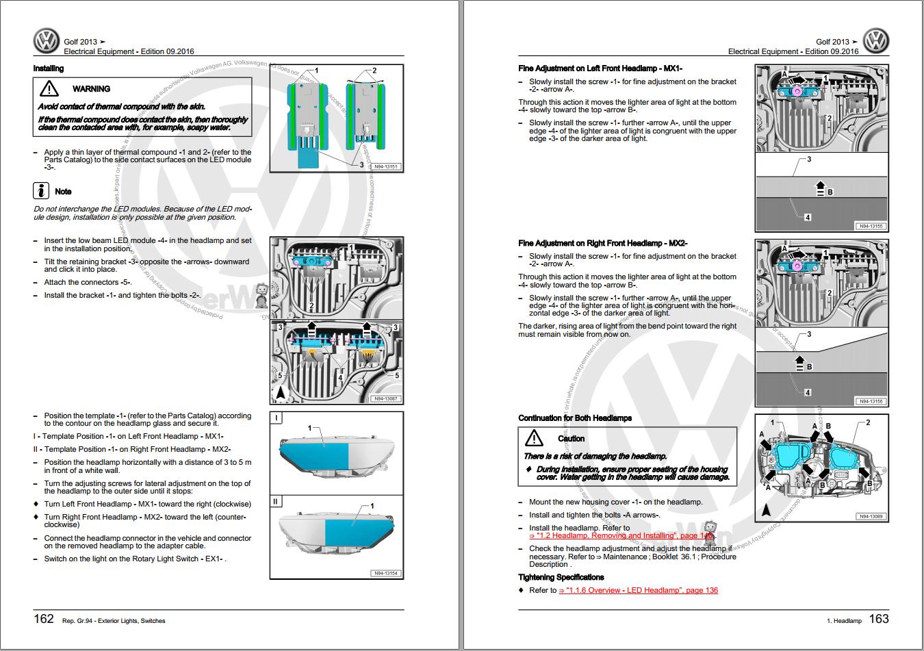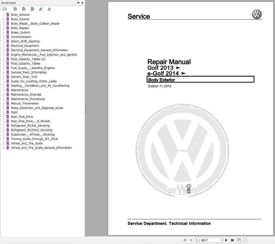 The Bookmarks of Volkswagen Golf 5G 2013-2017 Workshop Service Manual: