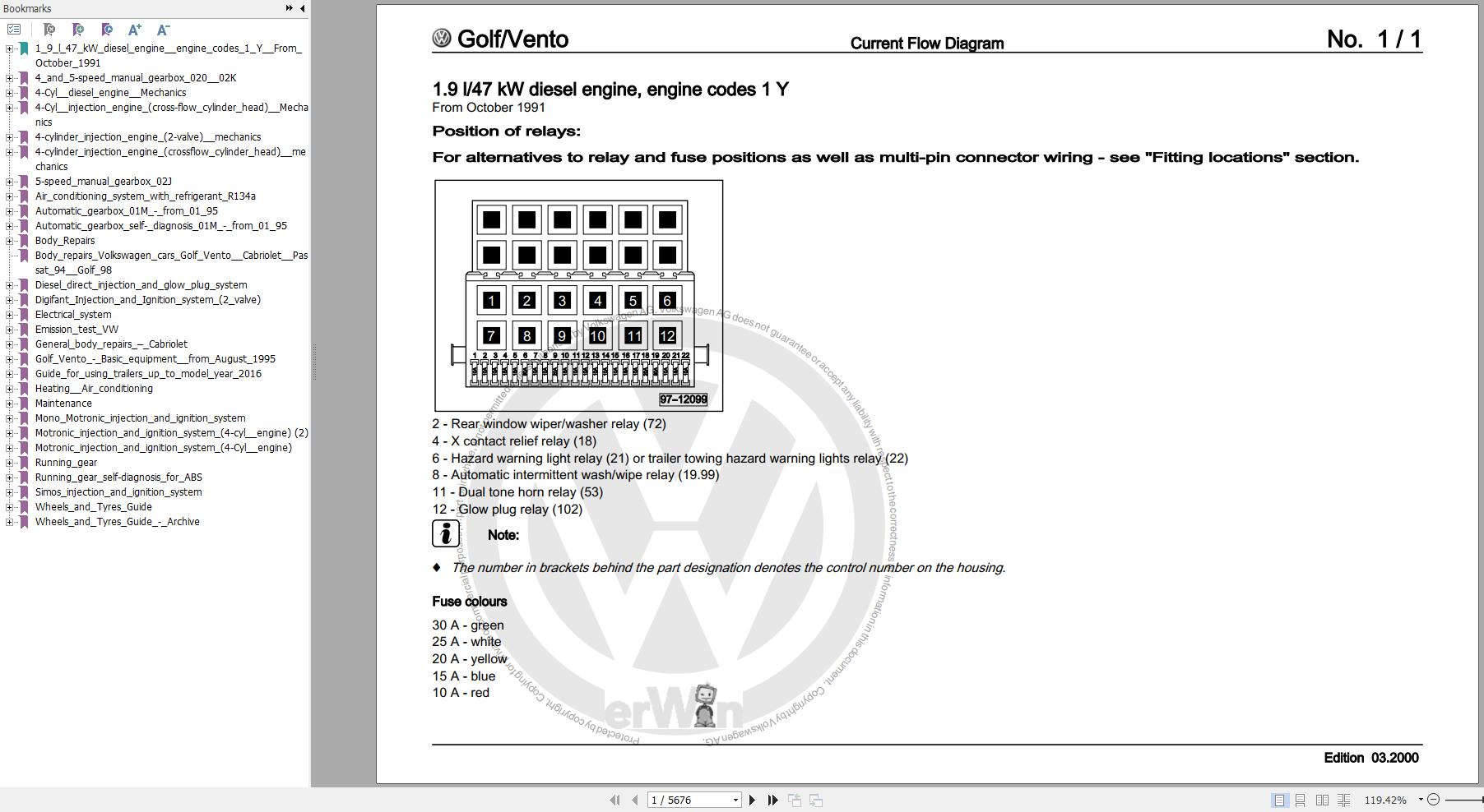 The Bookmarks of Volkswagen Golf Cabriolet 1E 1E7 1V 1V7 1994-2002 Workshop Service Manual: