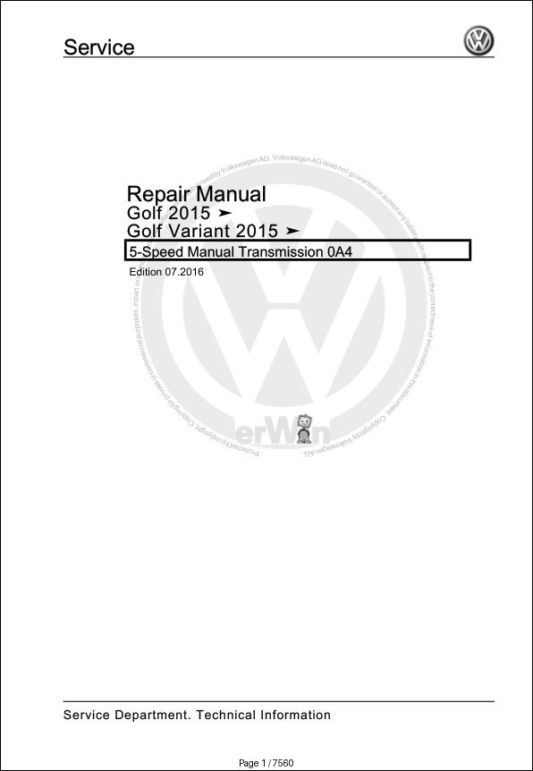 Volkswagen Golf MX AU1 2015-2017 Workshop Service Manual