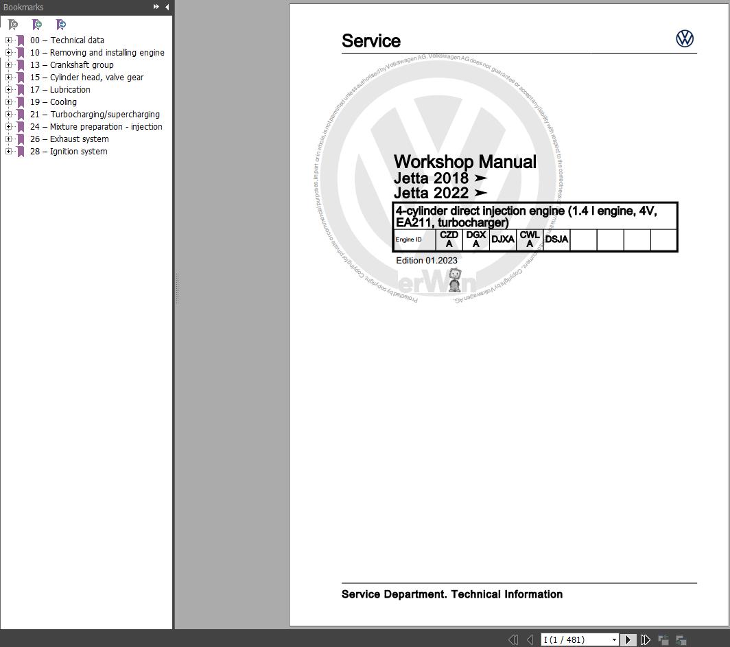 Repair Manual - D4D808CE042 4 cyl direct injection (1 5 l engine 4V EA 211 evo2 turbocharger)