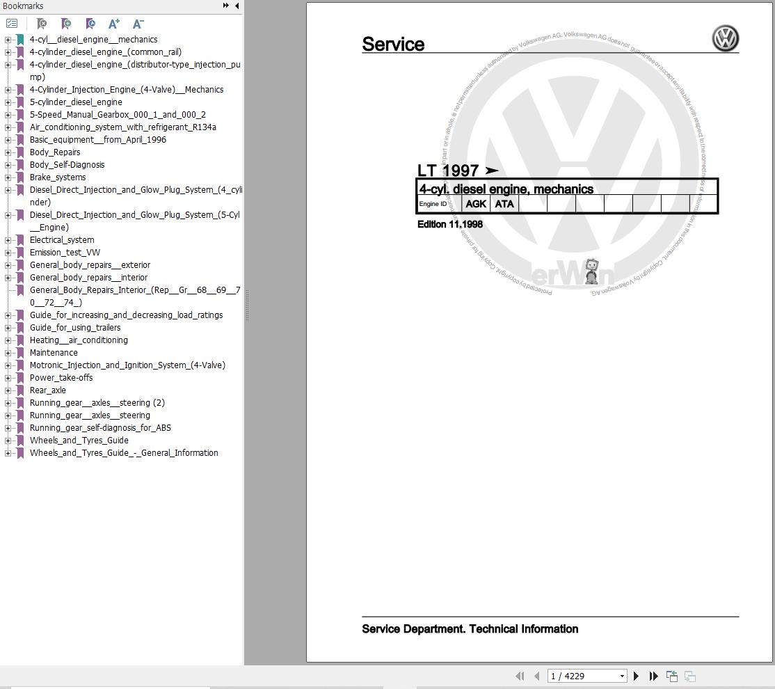 The Bookmarks of Volkswagen LT 2D 1996-2006 Workshop Service Manual: