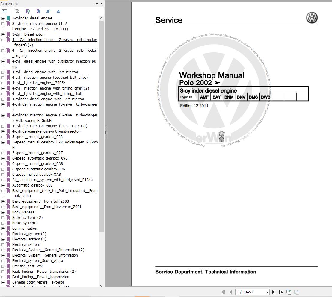 The Bookmarks of Volkswagen Polo 9N 9N3 9N4 2005-2010 Workshop Service Manual: