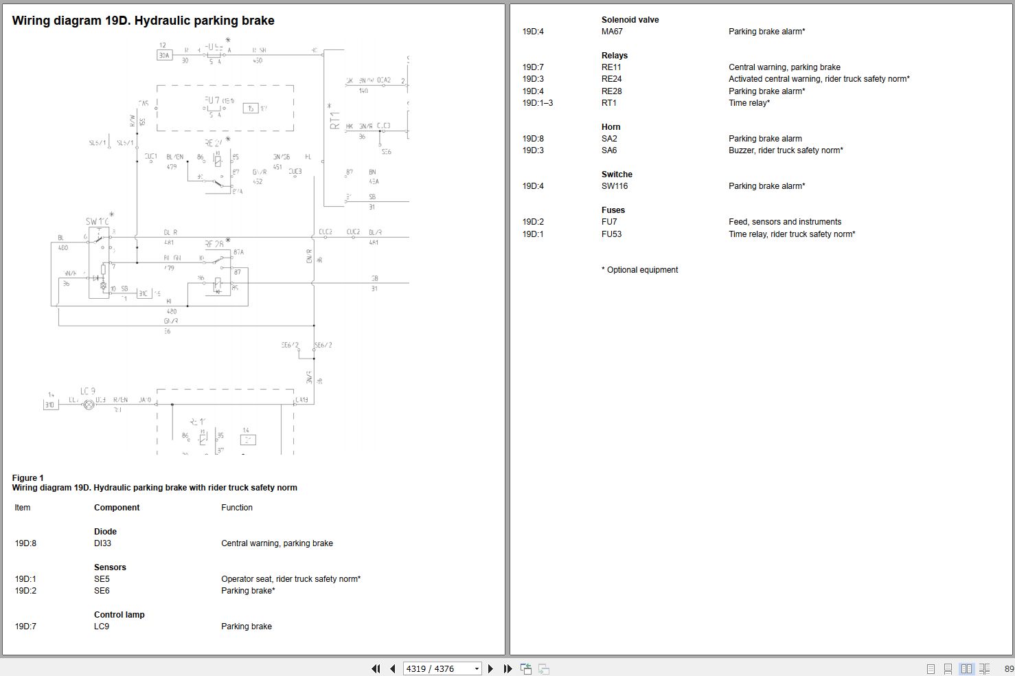 Wiring diagram 19. Mechanical parking brake with Rider truck safety norm