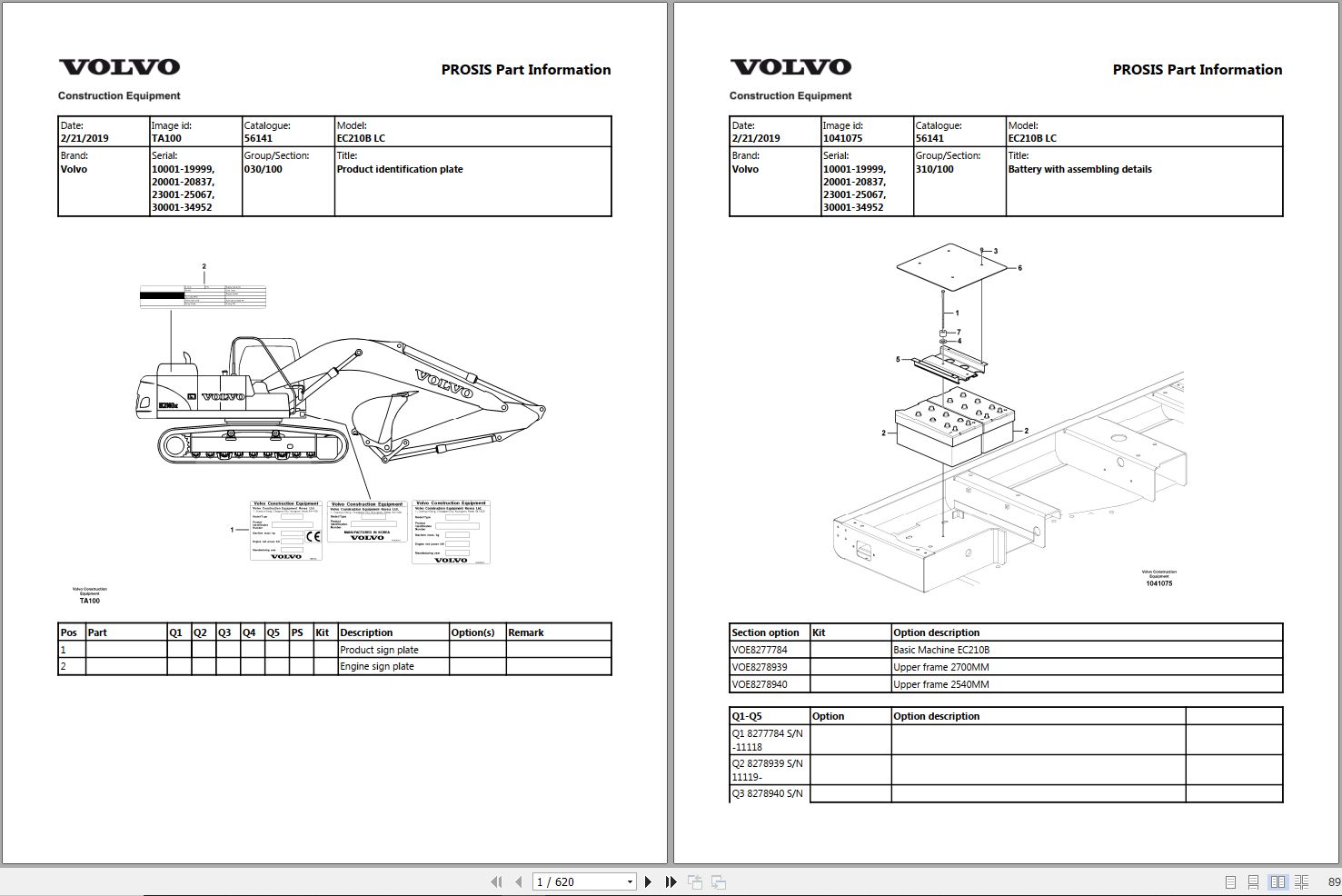 The Bookmarks of Volvo EC210B LC Excavator Parts Catalog: