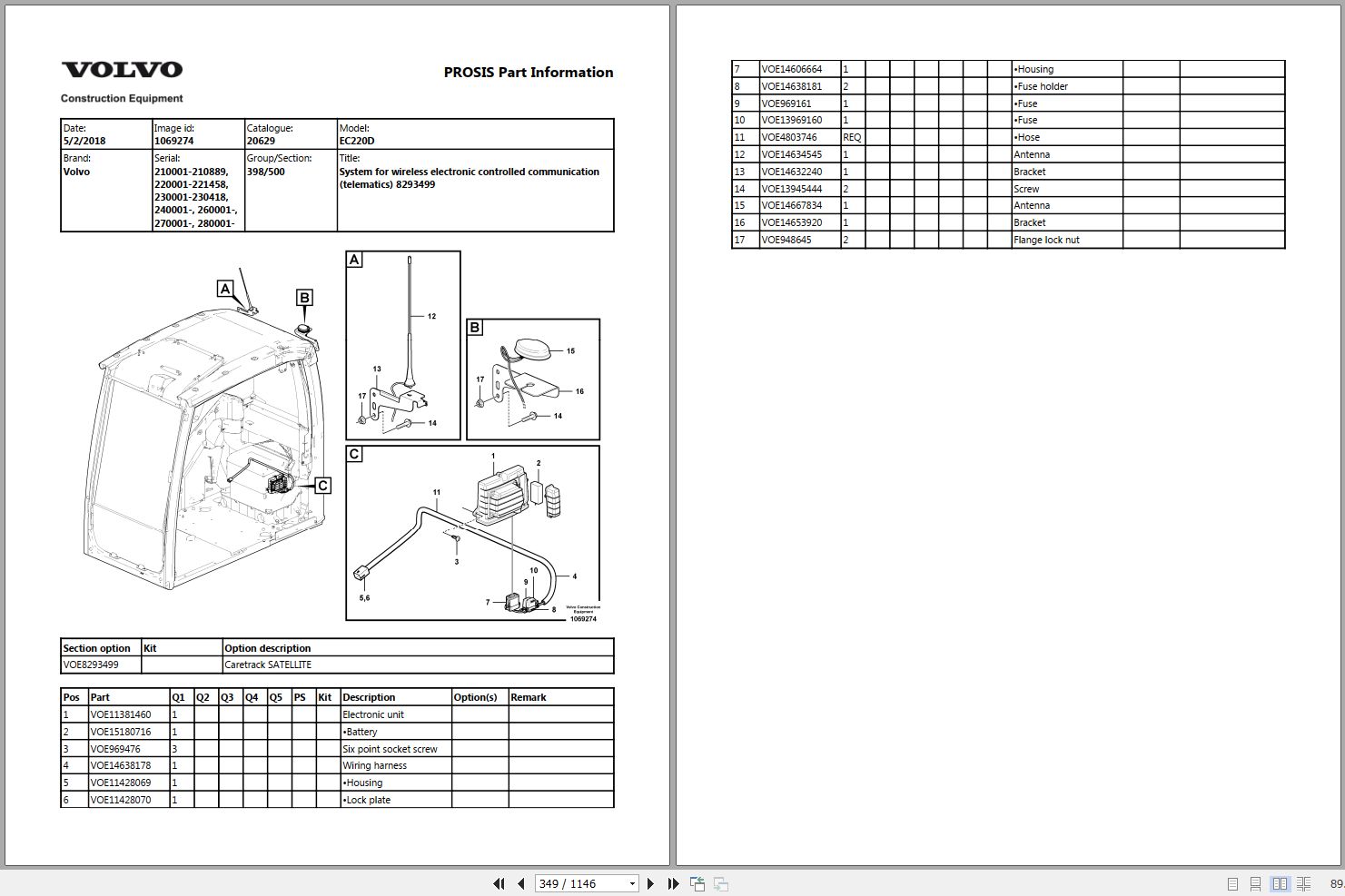 The Bookmarks of Volvo EC220D Excavator Parts Catalog: