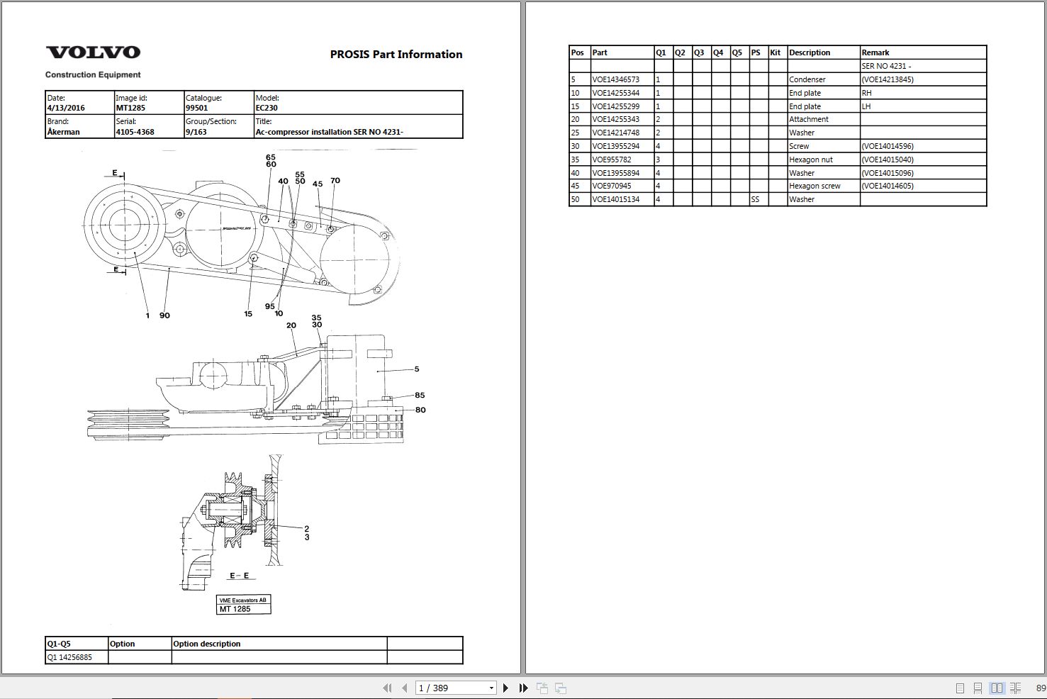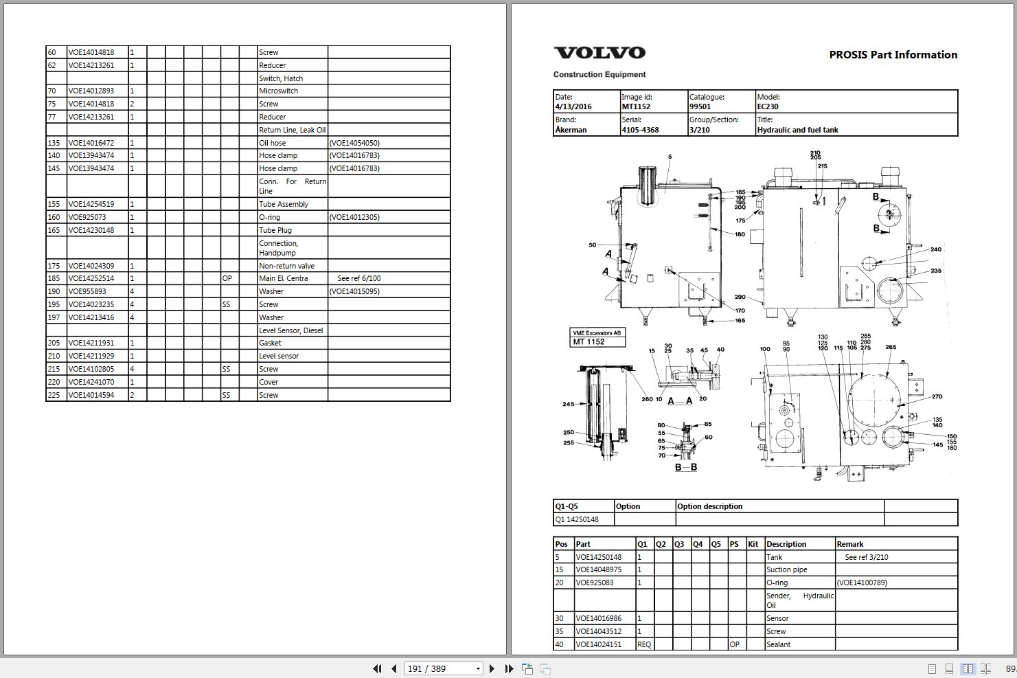 The Bookmarks of Volvo EC230 Excavator Parts Catalog: