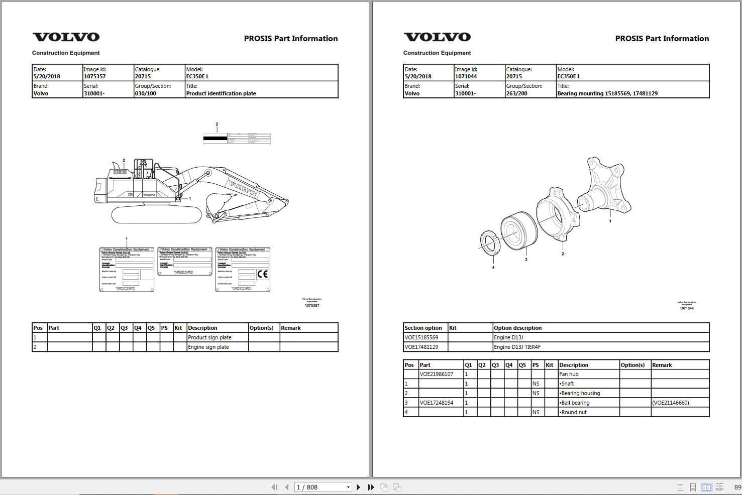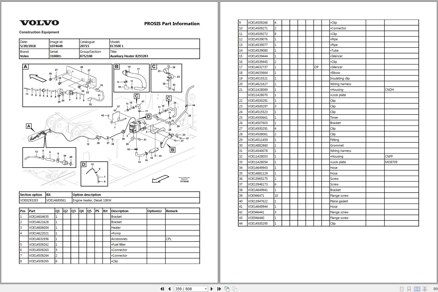 The Bookmarks of Volvo EC350E L Excavator Parts Catalog: