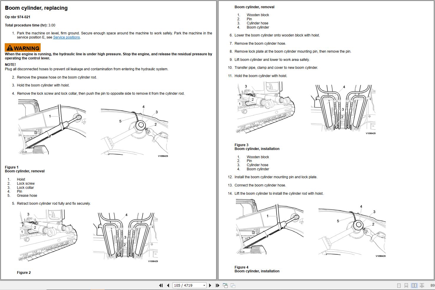 Boom cylinder, replacing