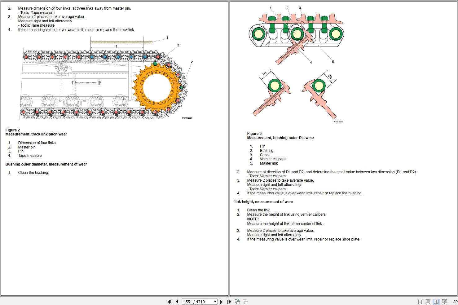 Track chain, measurement of wear 2