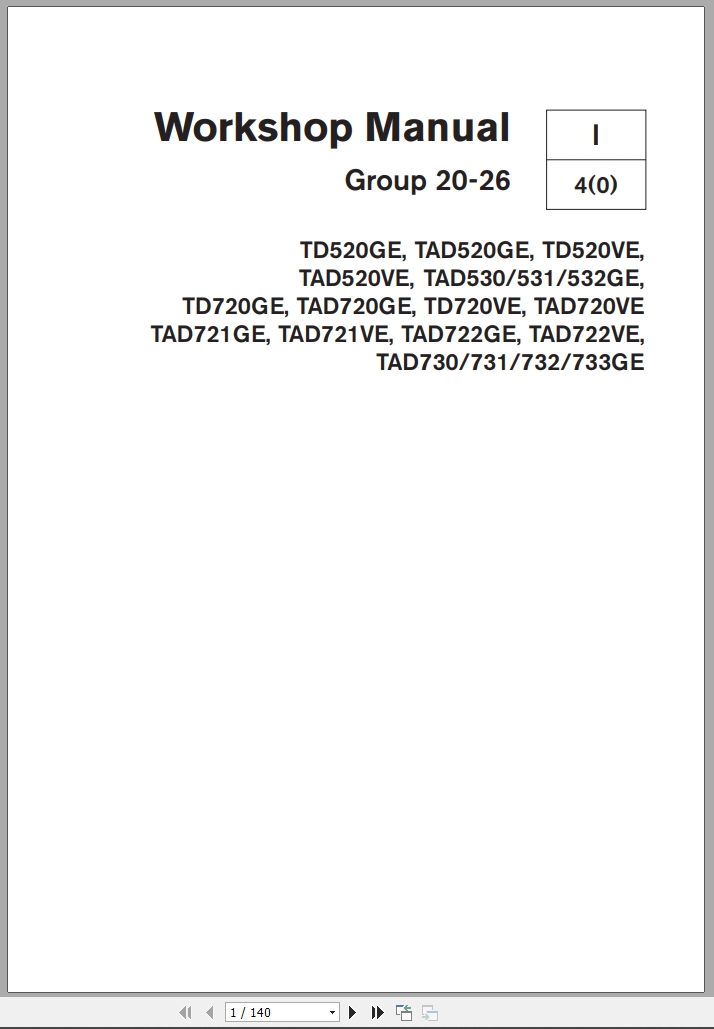 Volvo Penta TD520GE To TAD733GE Workshop Manual Group 20-26 Product Code 7740922 2007
