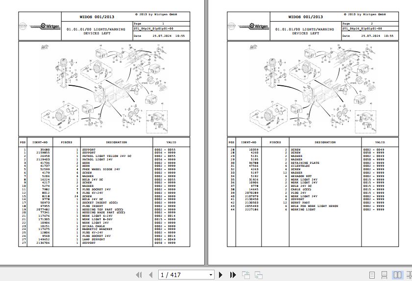 Wirtgen 2500 SM 06.26 146585 Parts Catalog