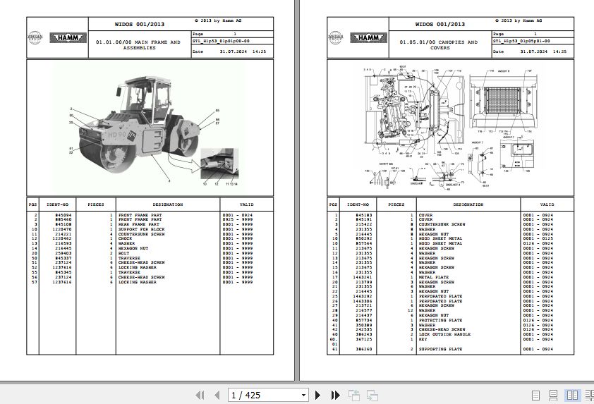 Wirtgen Hamm HD 90 - 110 H1.53 1302078 Parts Catalog