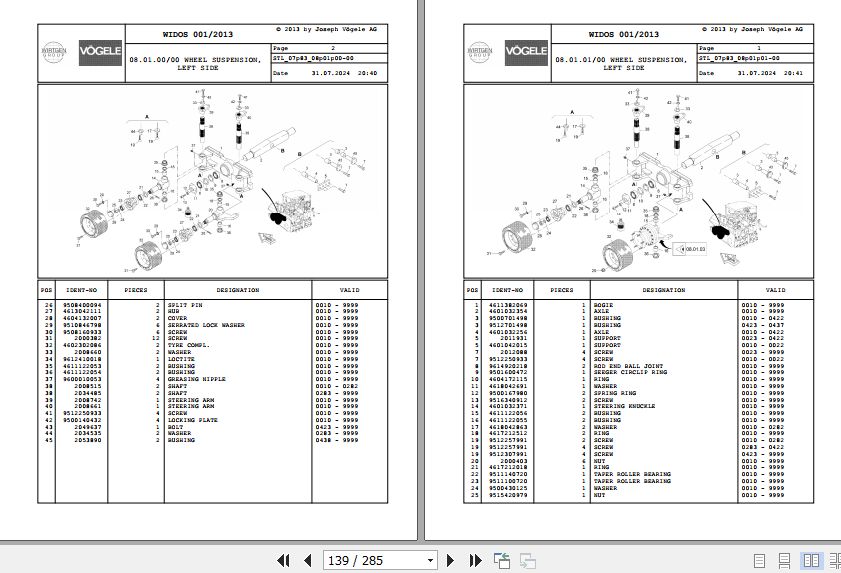 Wirtgen Vogele SUPER 1603-1 SUPER 1803-1 07.83 2011007 Parts Catalog