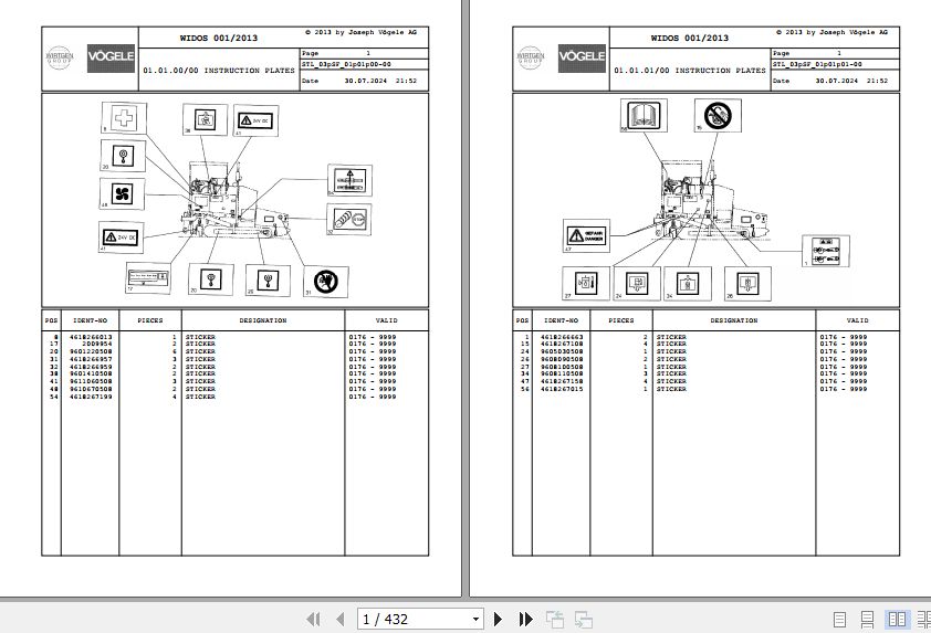 Wirtgen Vogele SUPER 1800 SF 03.SF 2008049 Parts Catalog