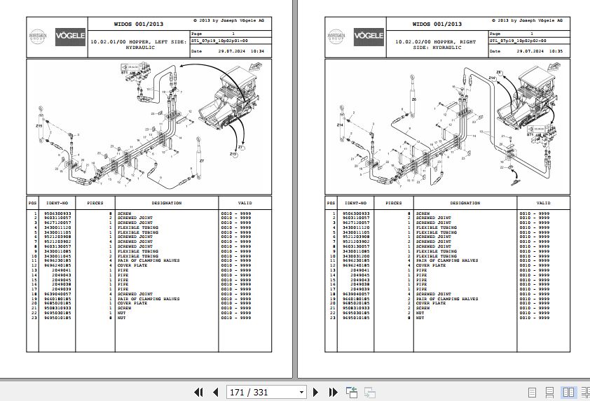 Wirtgen Vogele SUPER 1900-2 SUPER 2100-2 07.19 2043371 Parts Catalog