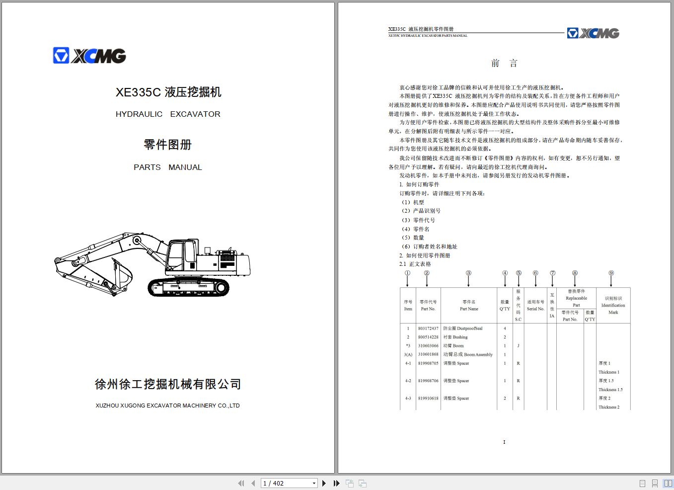 XCMG Hydraulic Excavator XE335C XE335 Parts Manual.pdf