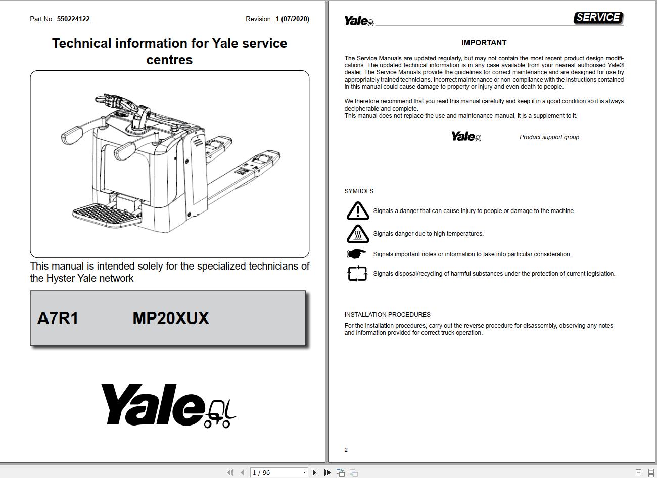 Yale A7R1 (MP20XUX) Operation and Service Manual
