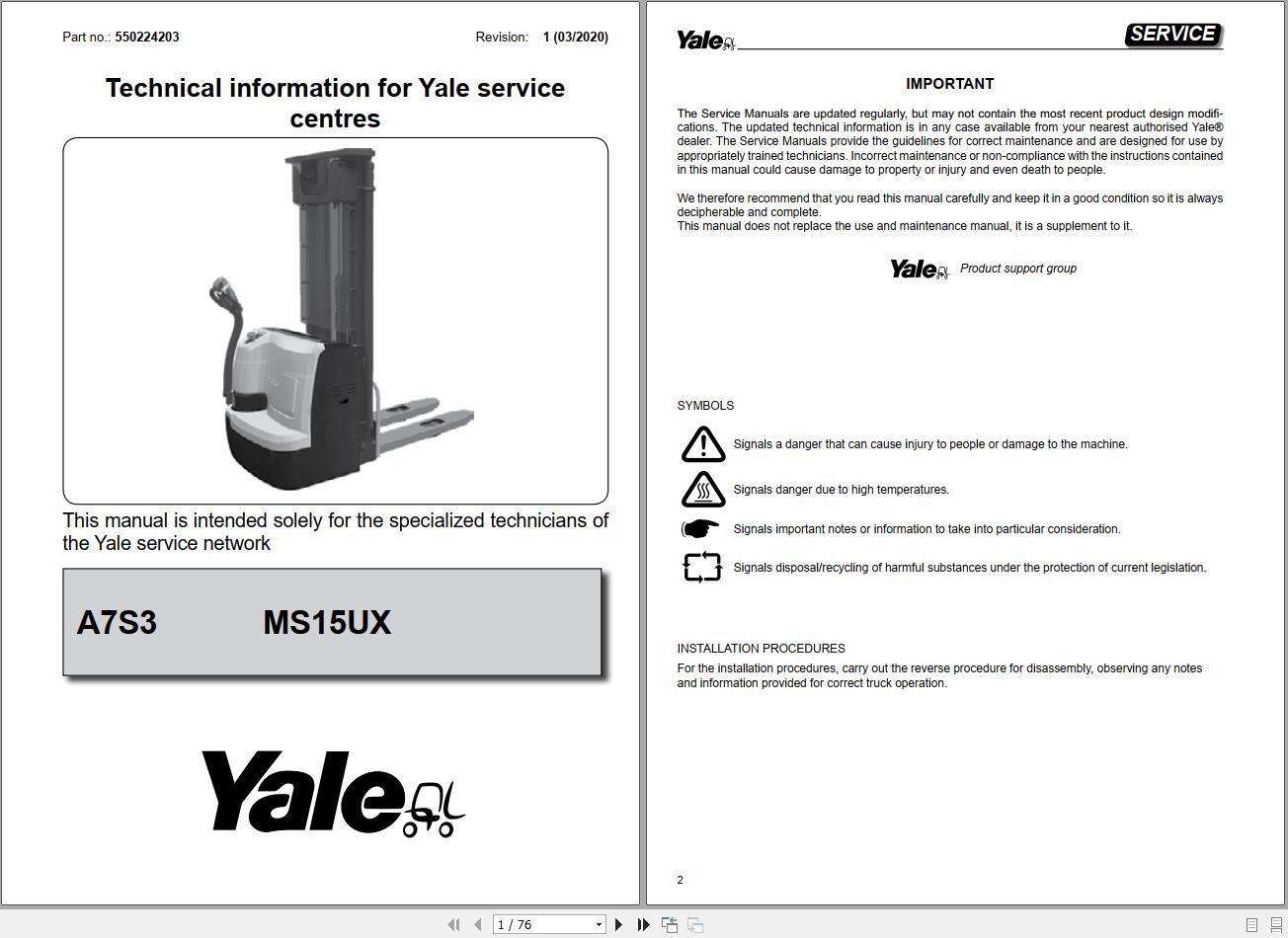Yale A7S3 (MS15UX) Operation and Service Manual