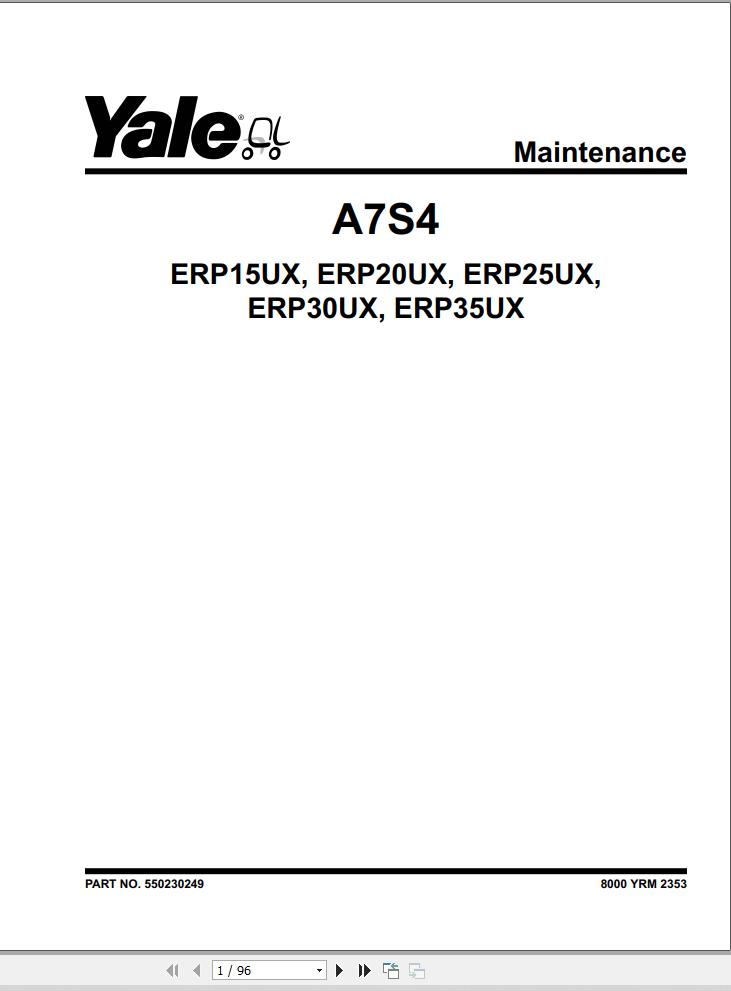 Yale A7S4 (ERP15UX, ERP18UX, ERP20UX, ERP25UX, ERP30UX, ERP35UX) Service Manual