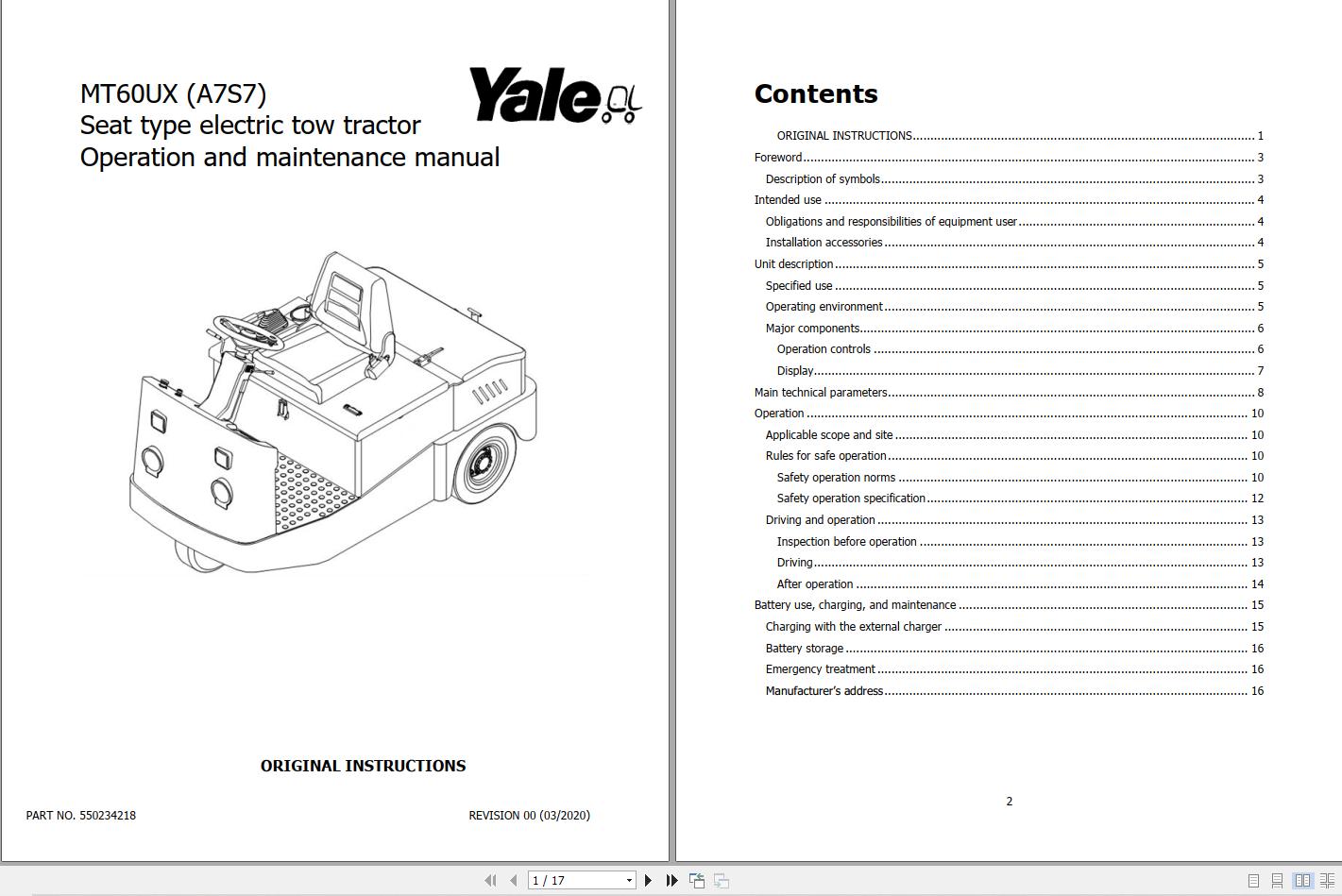 The Bookmarks of Yale A7S7 (MTA120UX) Operation and Service Manual: