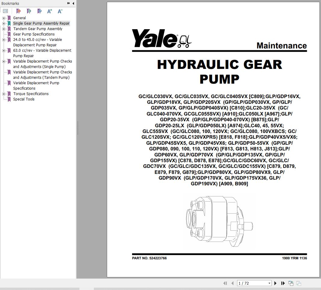 Yale C878 (GLP60-70VX, GDP60-70VX Europe) Service Manual