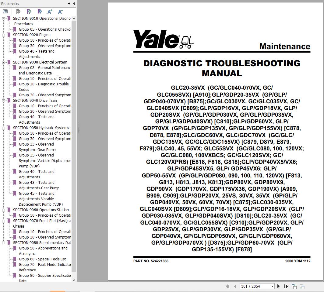 Yale D809 (GLC030-035VX, GLC040SVX) Service Manual