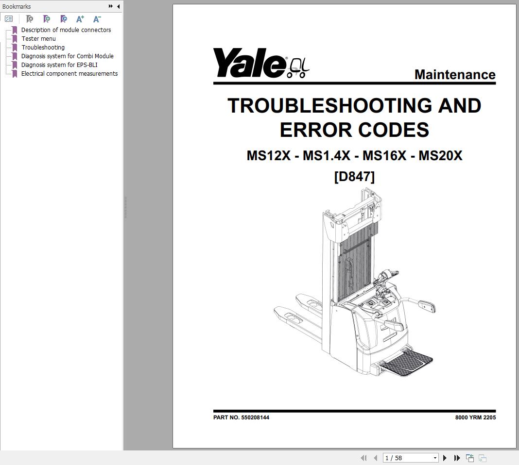 Yale D847 (MS12X - MS14X - MS16X - MS20X) Service Manual