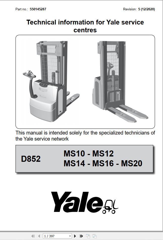Yale D852 (MS10 - MS12 - MS14 - MS16 - MS20) Service Manual