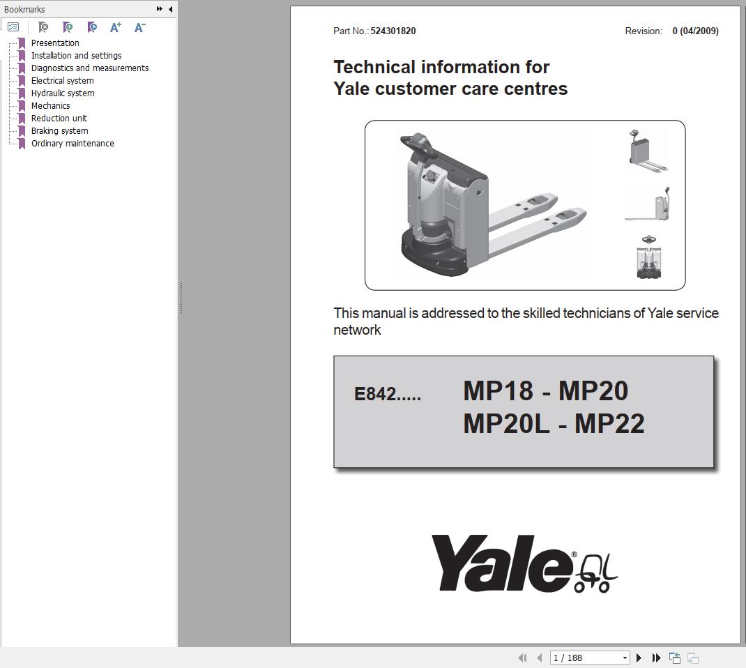 Yale E842 (MP18 AC - MP20 AC - MP20L AC - MP22 AC) Service Manual
