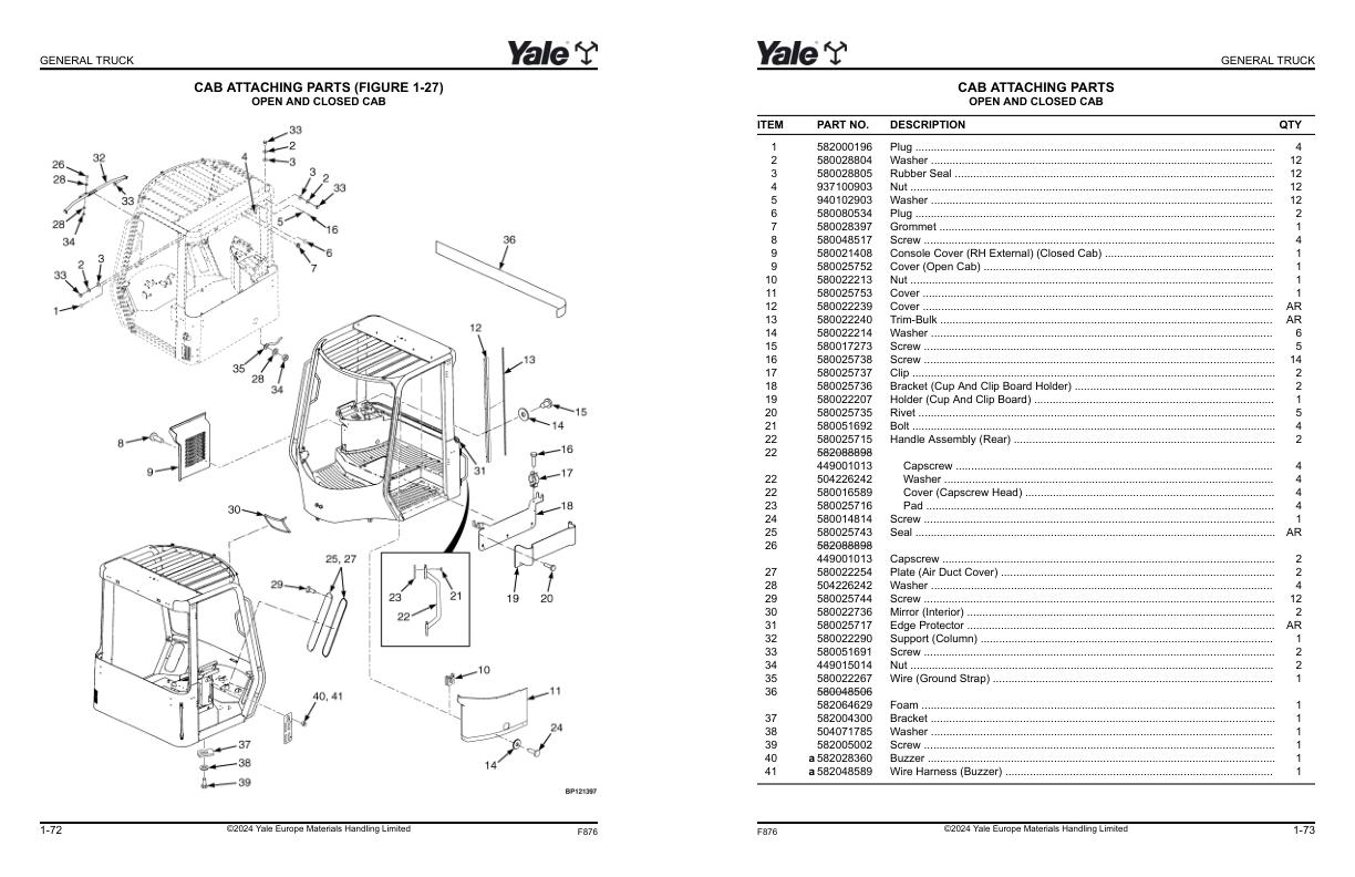 Yale F876E GDP80DC GDP90DC GDP100DC GDP100DCS GDP120DC Parts Catalog 550061708 05-2024