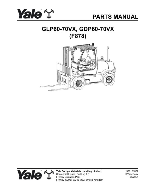 Yale F878E GLP60VX to GDP70VX Parts Catalog 550131832 05-2024