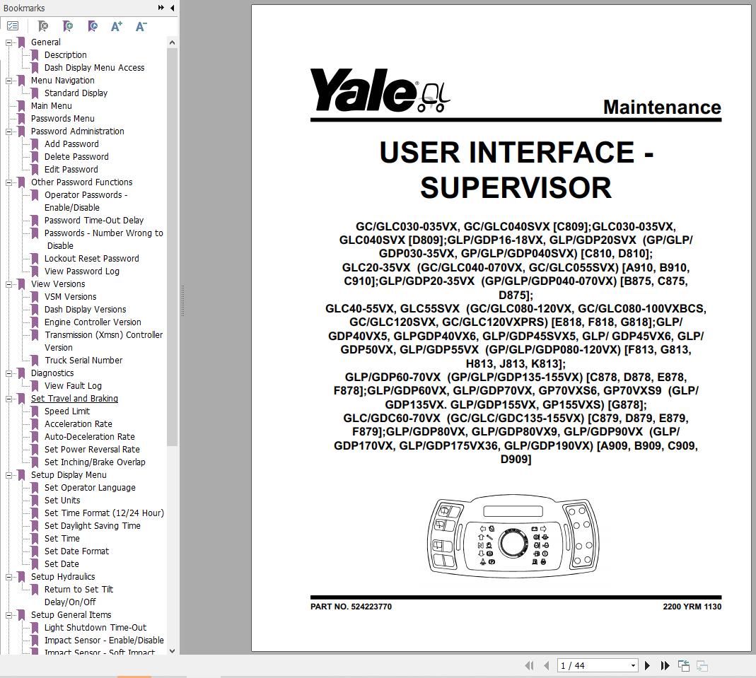 Yale G818 (GLC080-120 VX to GLC120VXPRS) Service Manual