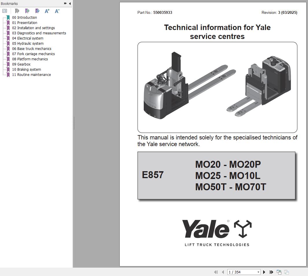 Machine Model: Yale MO10L MO20 MO20P MO20X MO25 MO50T MO70T (E857) Class 3