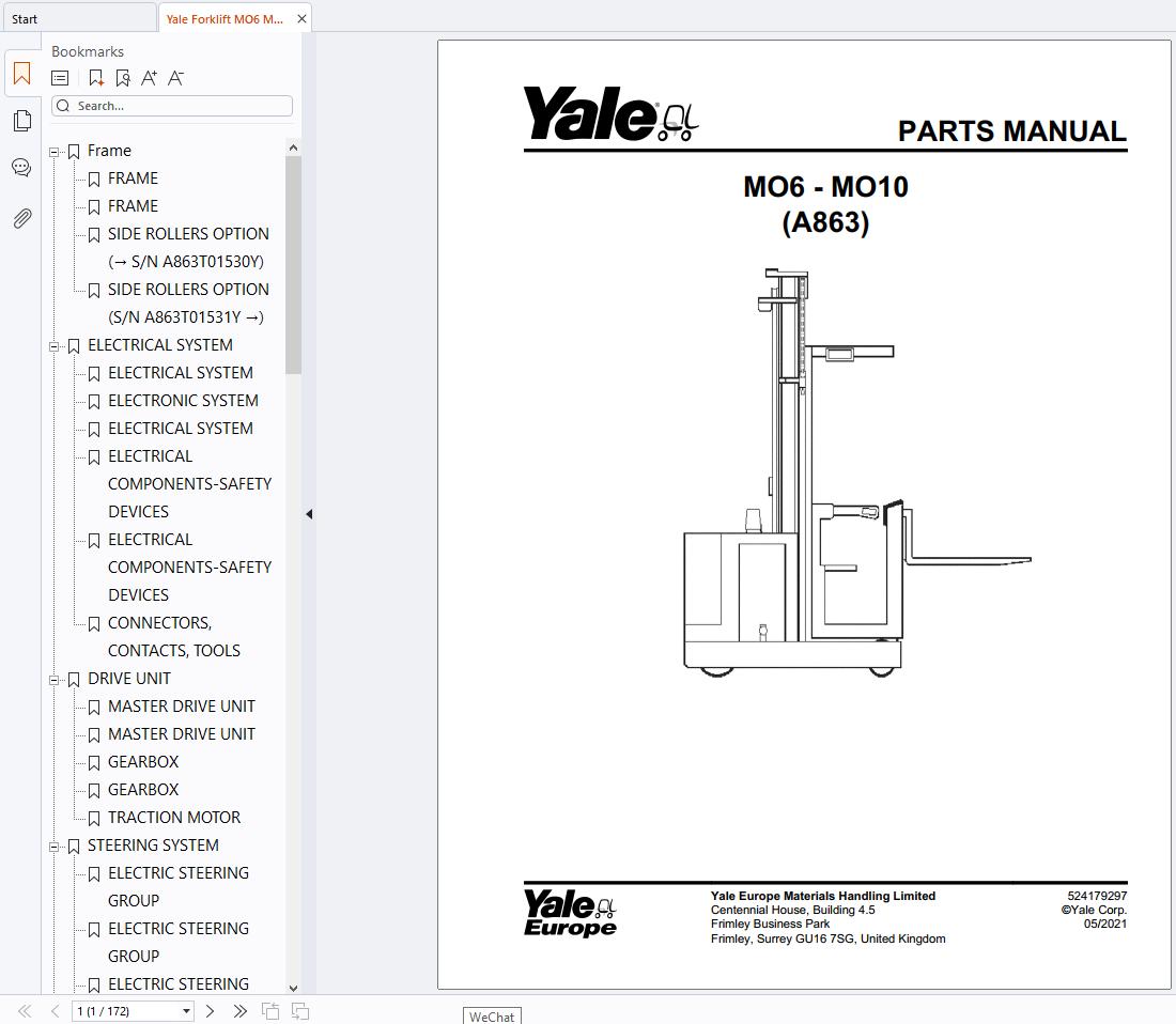 Yale MO6 MO10 A863 Parts Manual 524179297