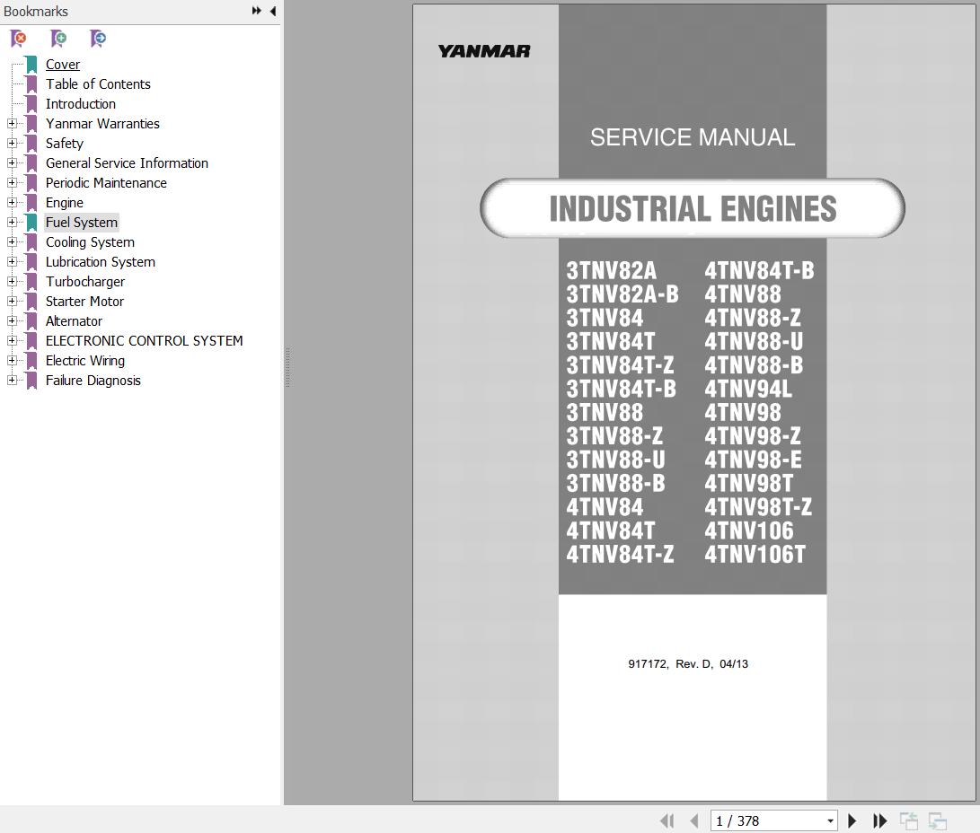 Yanmar 3TNV Series 4TNV Series Engine Service Manual 917172 Rev.D