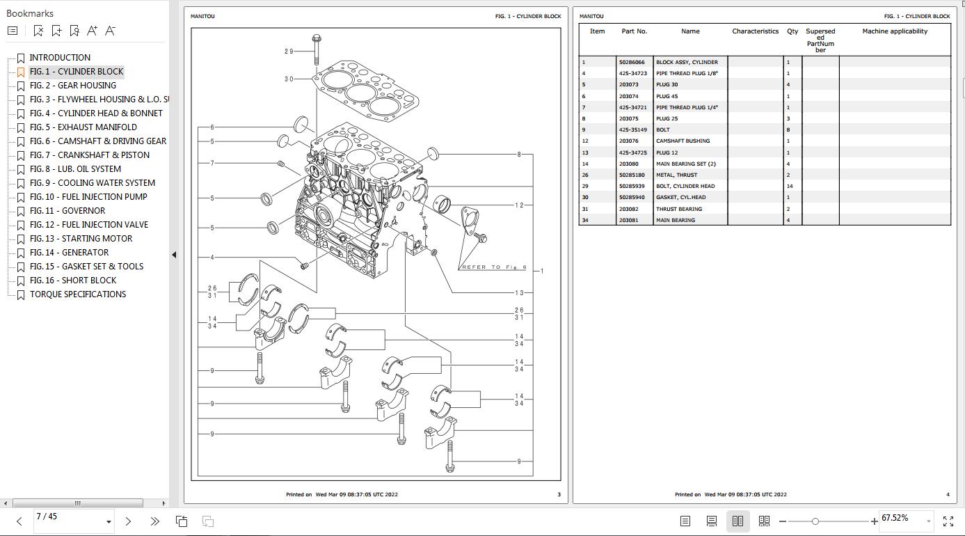 Yanmar 3TNV70-XBV Engine Parts Manual 50940095