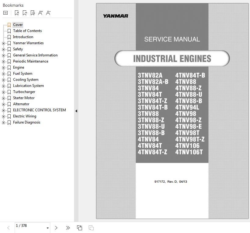 Yanmar 3TNV82A to 4TNV106T Service Manual 917172d