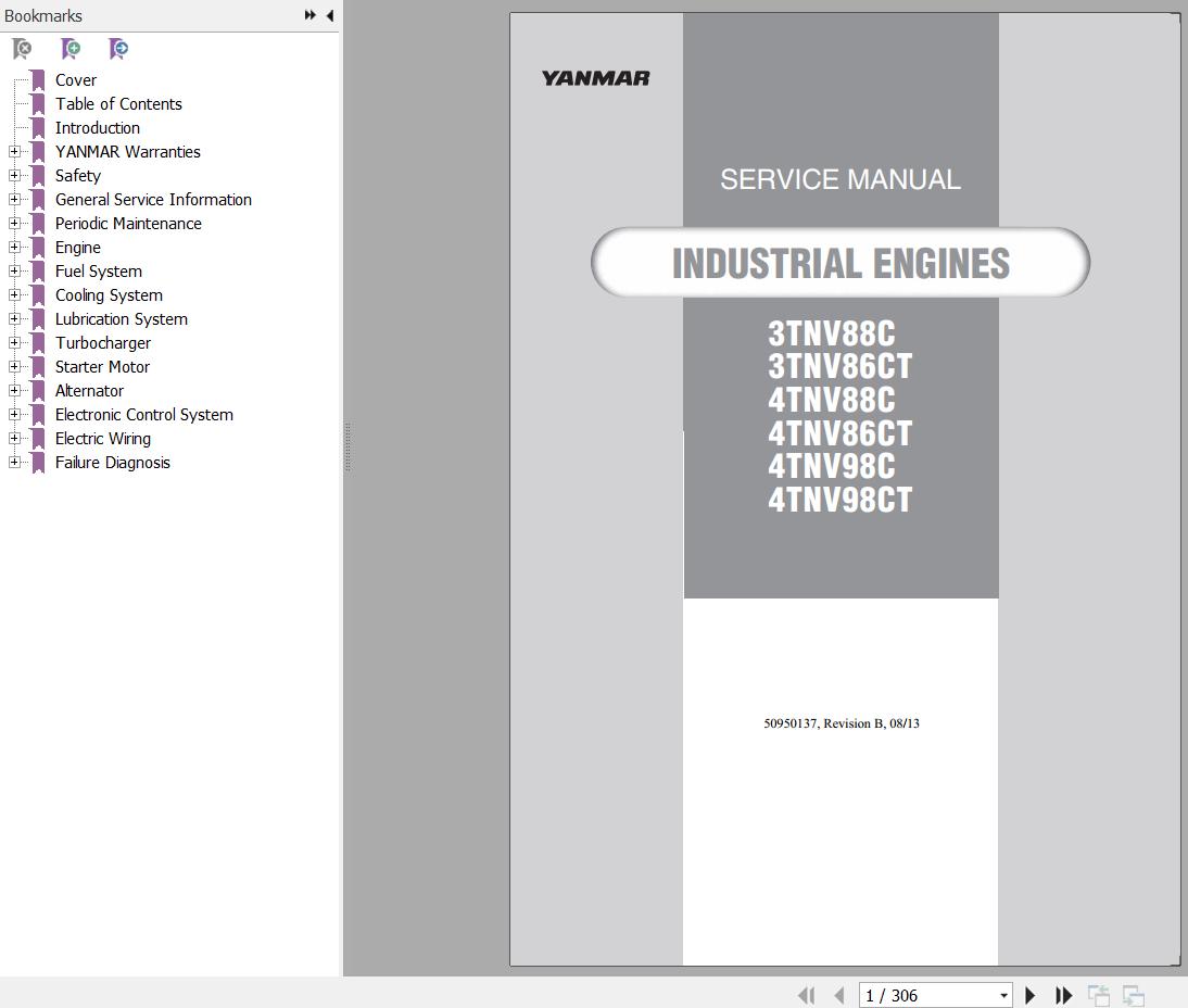 Yanmar 3TNV88C 3TNV86CT 4TNV88C 4TNV86CT 4TNV98C 4TNV98CT Engines Service Manual 50950137 Rev.B