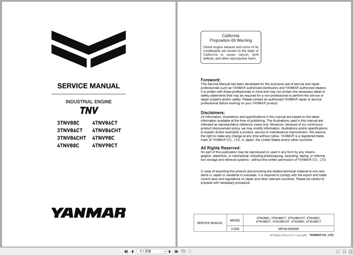 Machine Model: Yanmar 3TNV88C, 4TNV86CT, 3TNV86CT, 4TNV86CHT