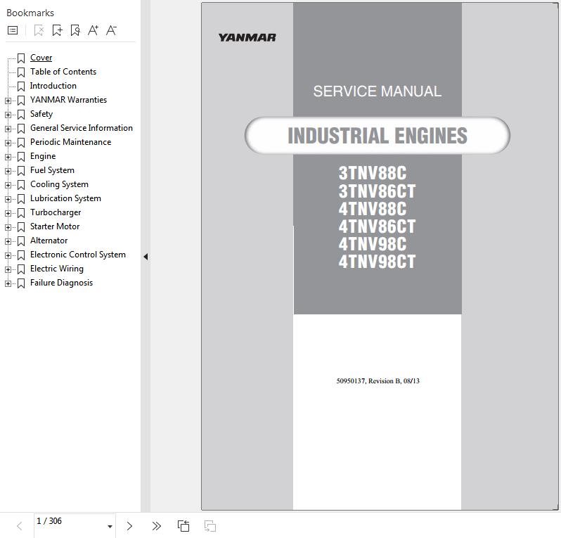 Yanmar 3TNV88C to 4TNV98CT Service Manual 50950137b