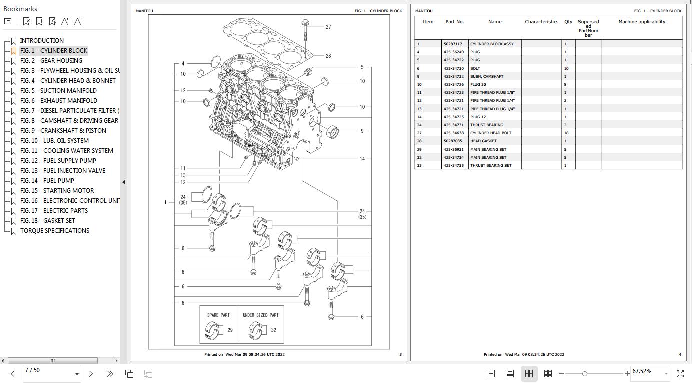 Yanmar 4TNV88C-KMS 4TNV88C-KMSV Engine Parts Manual 50940248