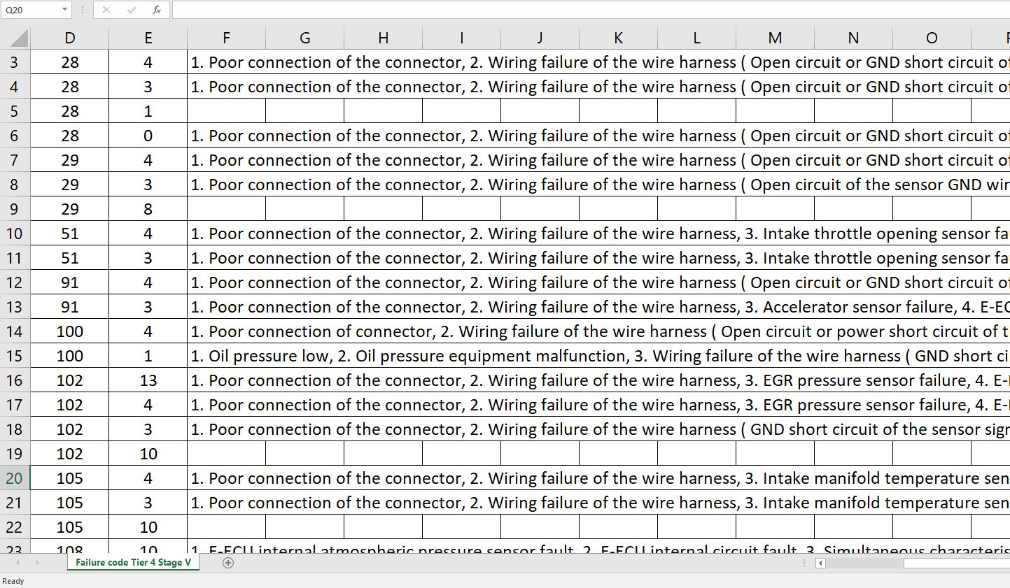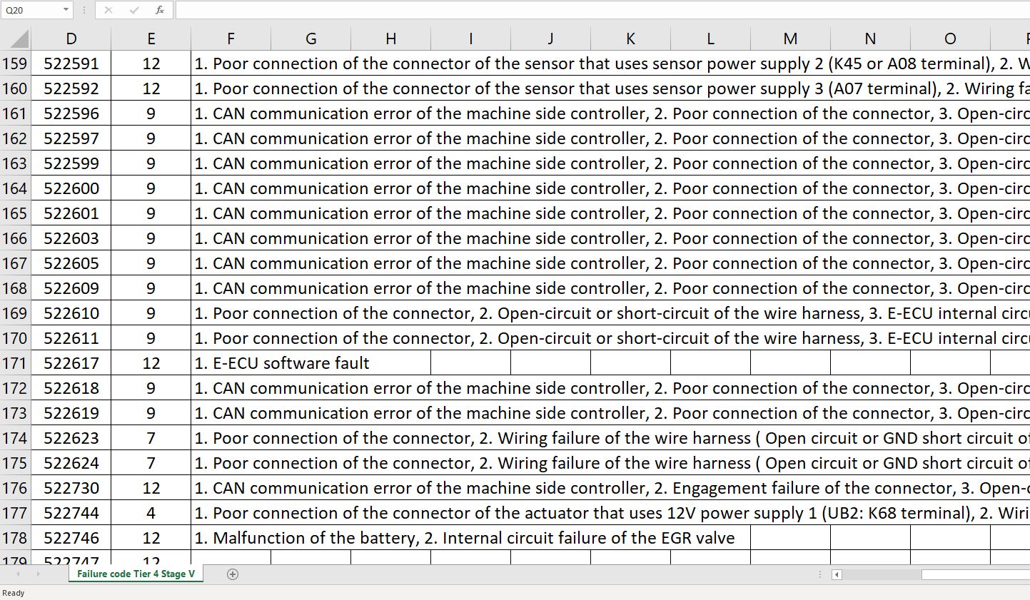Yanmar 4TNV88C-ZXXX Tier 4 Stage 5 Fault Code