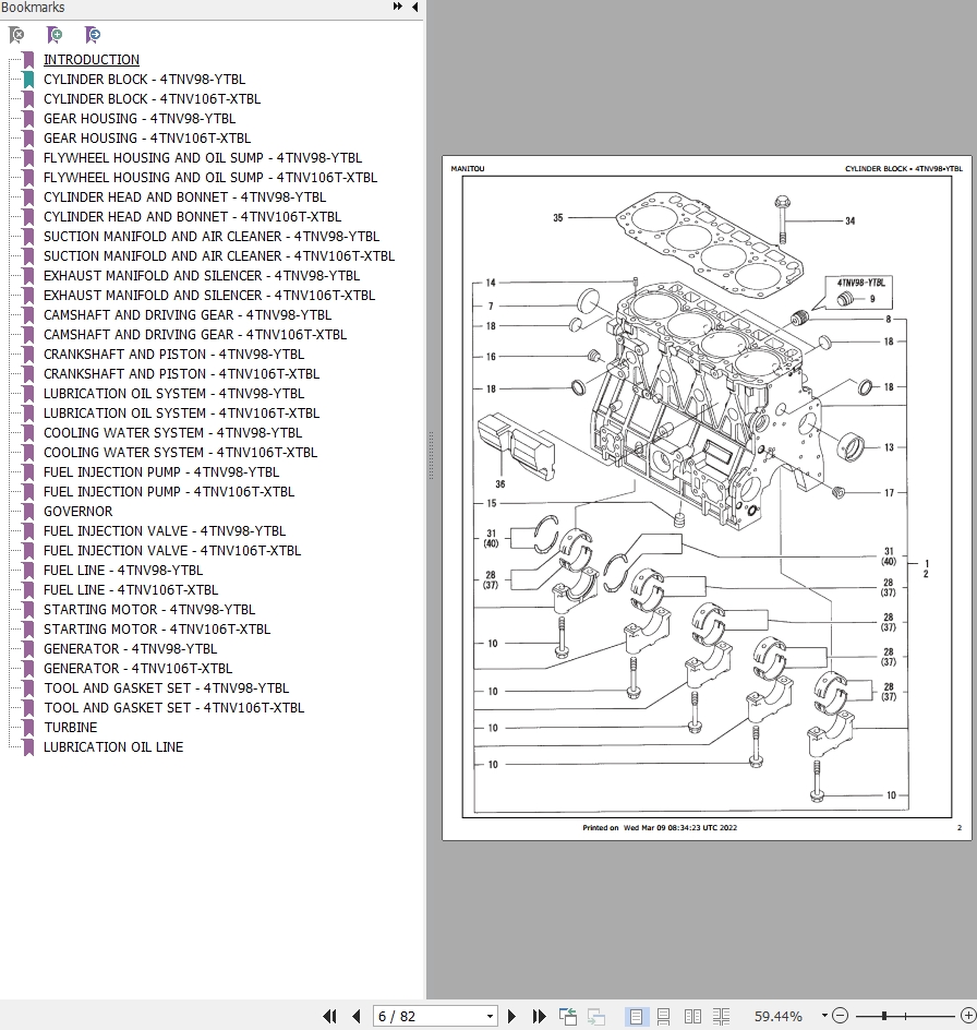 The Bookmarks of Mustang 4TNV98-YTBL 4TNV106T-XTBL Engine Parts Manual: