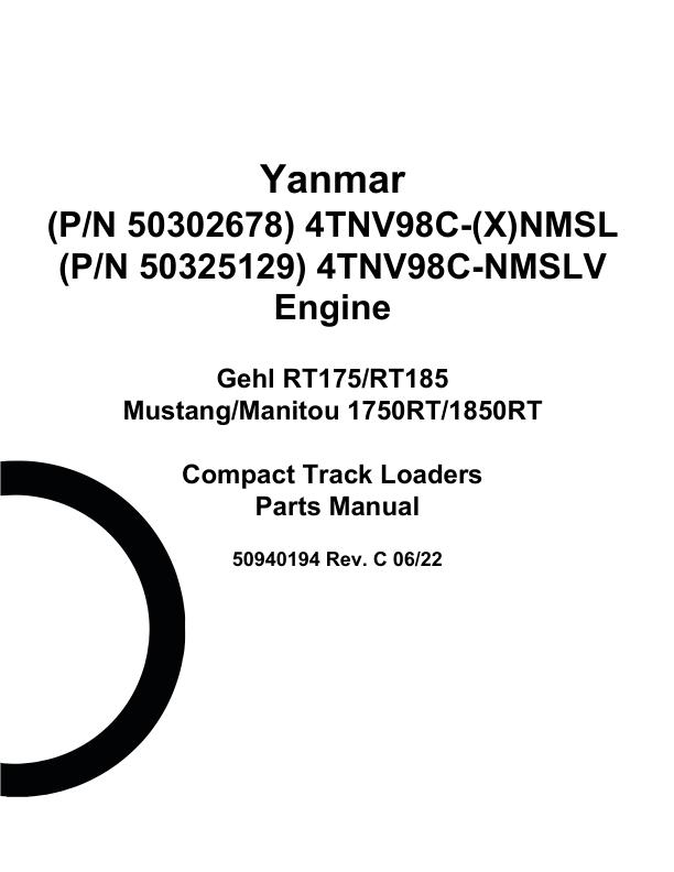 Yanmar 4TNV98C-(X)NMSL 4TNV98C-NMSLV Tier 4 Engine Parts Manual 50940194C