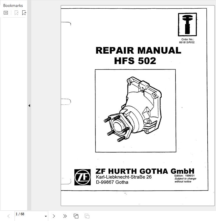 ZF Hurth Gearbox HFS 502 Repair Manual 661813-R-02